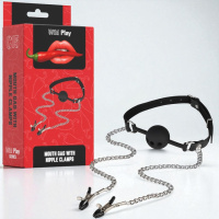 Кляп із затискачами на соски Eroscape Wild Play - ідеальне рішення для тих, хто хоче додати гостроти та нових відчуттів в інтимні ігри. Цей набір...