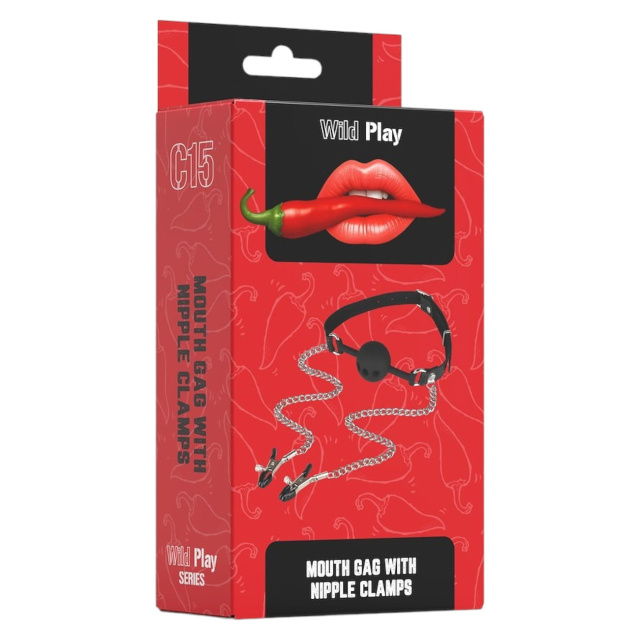 Кляп із затискачами на соски Eroscape Wild Play - ідеальне рішення для тих, хто хоче додати гостроти та нових відчуттів в інтимні ігри. Цей набір поєднує обмеження мови з інтенсивною стимуляцією сосків, створюючи унікальний досвід домінування та підпорядкування.