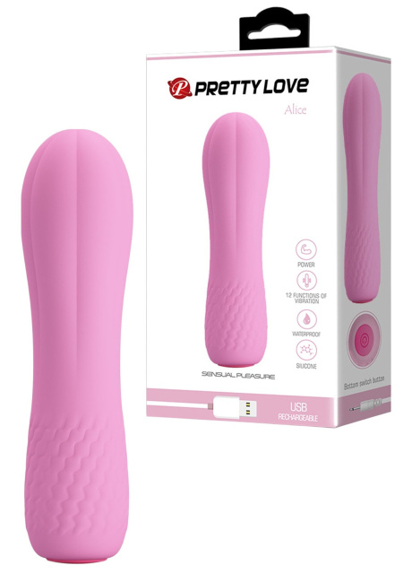 Міні-вібратор Pretty Love Alice - це компактний і потужний пристрій для жінок, який поєднує стильний дизайн, зручність використання та інтенсивну стимуляцію. Його ергономічна форма та ребриста поверхня розроблені для точного впливу на ерогенні зони, забезпечуючи максимальне задоволення.