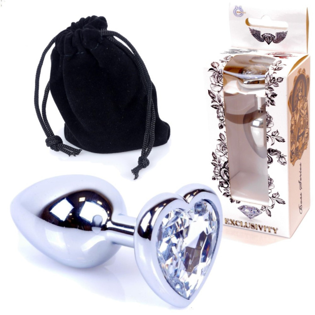Металевий анальний корок Boss Series сріблястого кольору з гладкою безшовною поверхнею стане вишуканим аксесуаром для ваших інтимних ігор, додаючи нові відчуття та задоволення. Елегантне серце з кристалом на широкій основі надає іграшці естетичної привабливості та чуттєвості.